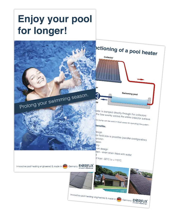 Für eine Messe musste ein englischsprachiger Flyer entworfen werden, um das neue Pool-Heizungsystem zu verkaufe. Dies war ein Blitzauftrag gewesen. Die Grafiken und Texte wurden vom Auftraggeber zur Verfügung gestellt.